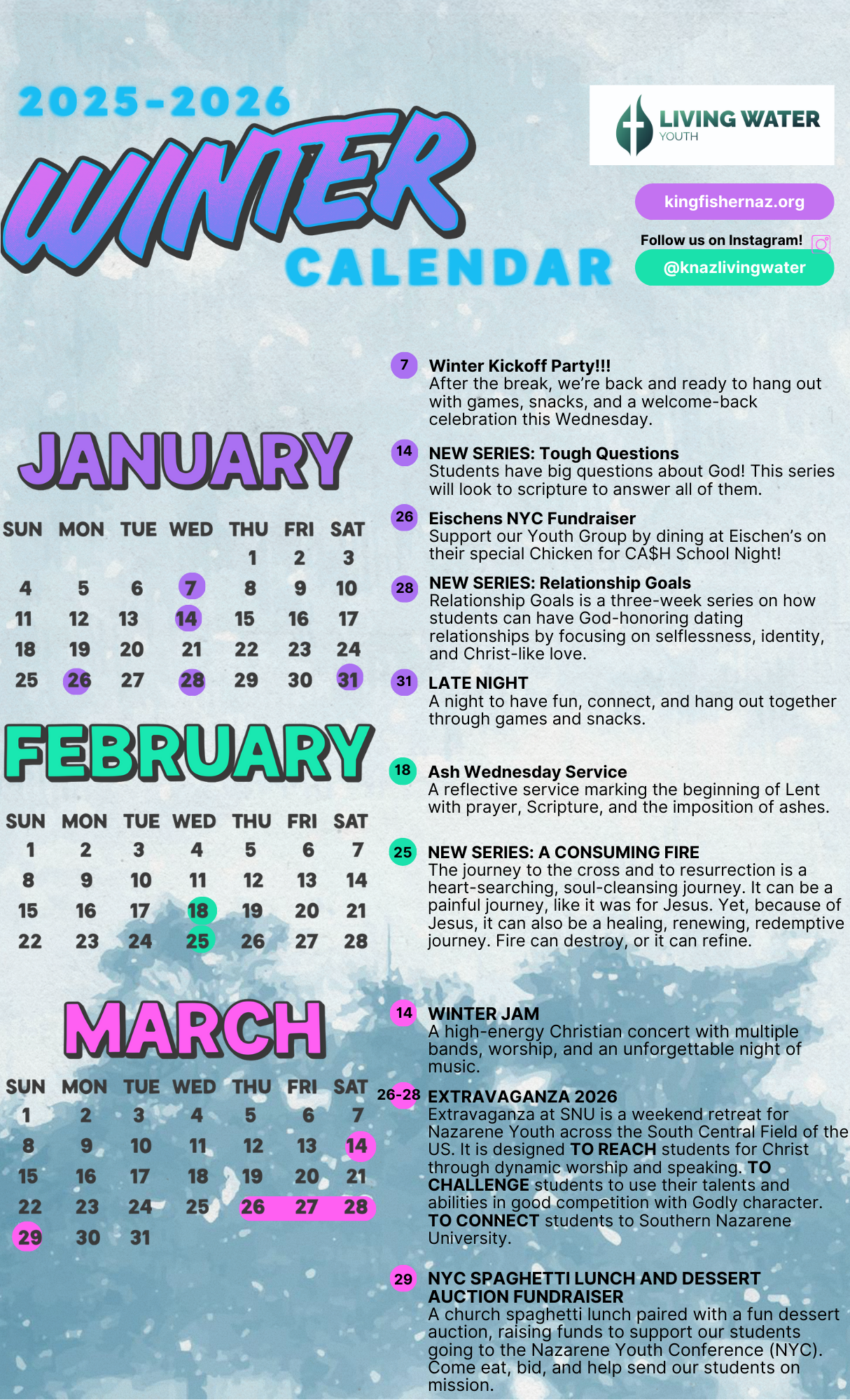 We’re kicking off the new year the best way we know how with games, laughter, and a whole lot of fun. Come hang out, jump into some friendly competition, and start the year surrounded by friends and your youth group. Fresh year, fresh energy, and a night you definitely won’t want to miss. 🎉 Join us Wednesday, January 7.Button